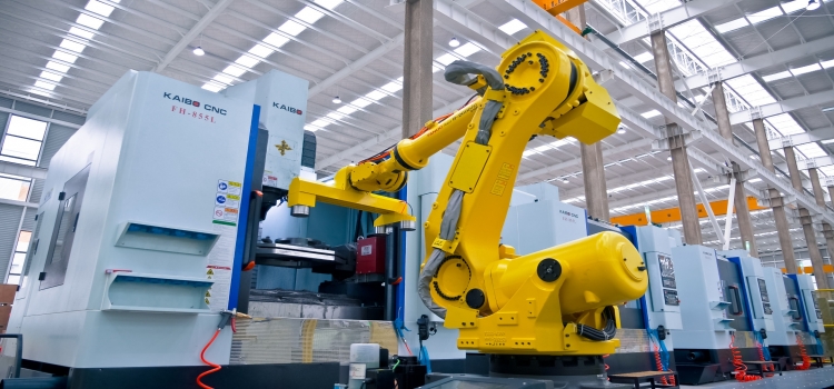 凱博柔性生產(chǎn)線該方案由五臺(tái)加工中心(根據(jù)產(chǎn)品狀況可設(shè)置更多)、一個(gè)可編碼的材料庫、一臺(tái)機(jī)械手組成??蛇B續(xù)24小時(shí)可靠運(yùn)行,無須工人值守。將機(jī)器人和數(shù)控雕銑機(jī)、加工中心等集成到一個(gè)加工單元,充分發(fā)揮各自的優(yōu)勢(shì),提高了加工效率,也提高產(chǎn)品加工精度和機(jī)床使用效率,從而達(dá)到降低加工成本、機(jī)器換人的目的。